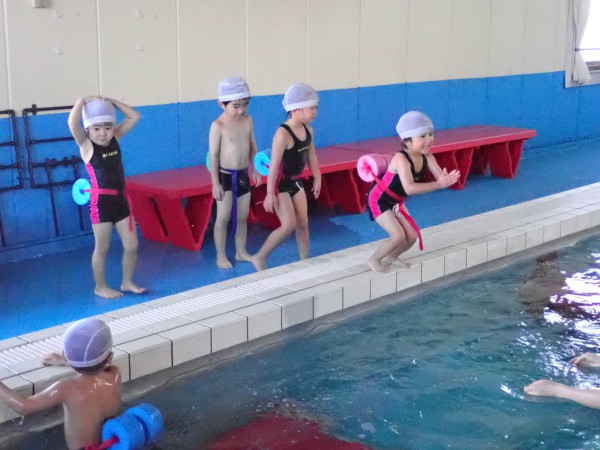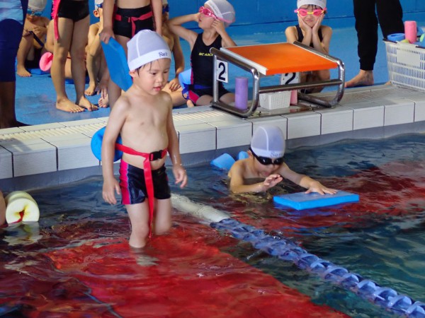 In the frog class, we were able to practice keeping our heads firmly in the water when swimming with our faces in the water. Some children couldn’t catch their breath and looked up midway through the swim, but with the encouragement of their coach, they were able to swim with enthusiasm.