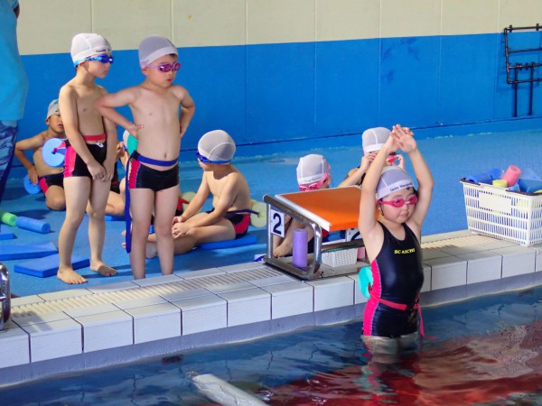 In the 14th grade class, the size of the beat board has gradually become smaller and more children have improved in their swimming ability. The number of children who can swim 5 meters without a beat board is increasing. I was able to swim enthusiastically with the encouragement of my coach.