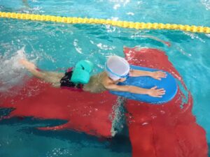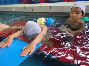 In the frog class, they practice diving while keeping their heads and face firmly in the water. Some children couldn’t catch their breath and looked up midway through the swim but with lots of encouragement they did their best.