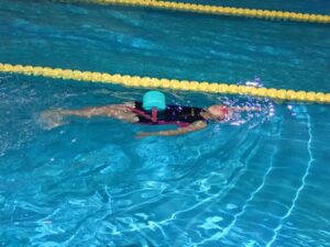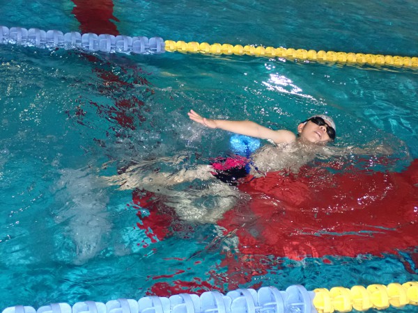 The 9th grade class practiced back kicks, and arms rotation. She was able to swim with a lot of consciousness.