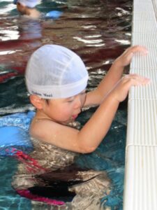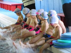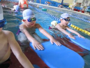 In the 12th grade class, we practiced crawling by rotating our arms in the water. Together with coach’s help the children were able to swim while rotating their arms in rhythm with time.