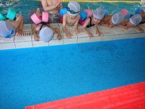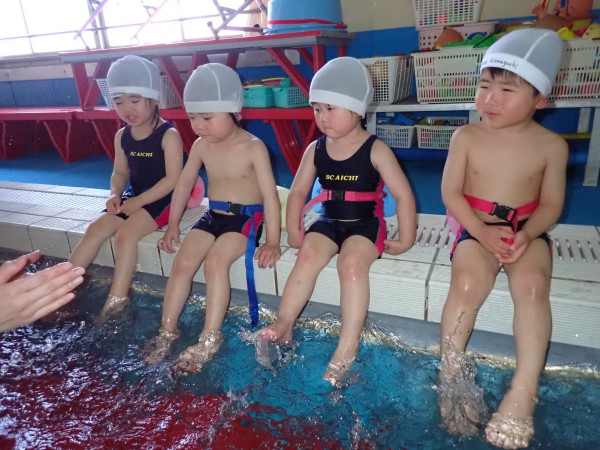 The Crab class did activities such as holding on to the edge of the pool and walking like a crab, and walking on a platform like a crocodile.