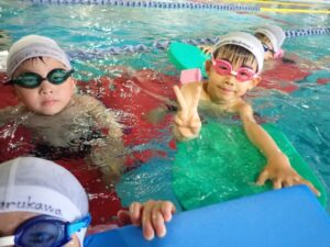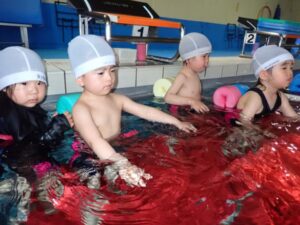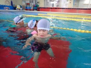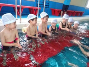 The Crab class did sit kicks, crab and crocodile walks under the water to get use to the water. They also practiced jumps and dipping face in the water. They finally played with toys to finish the lesson.