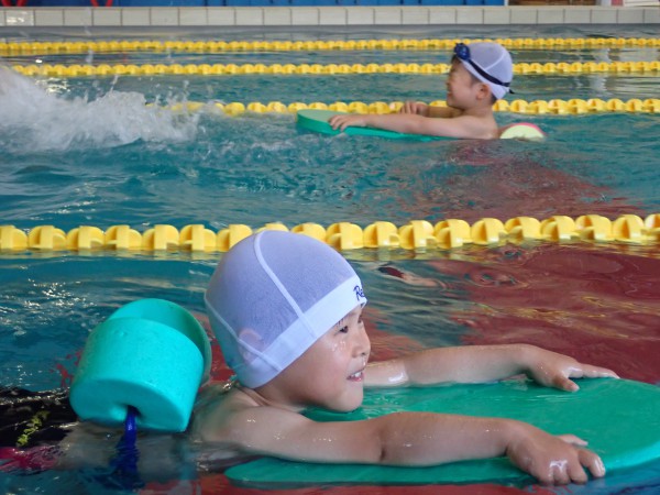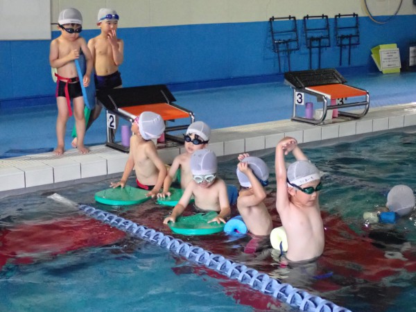 In the frog class, children are getting better at floating, and can now swim with their arms and legs straight and keep their balance.