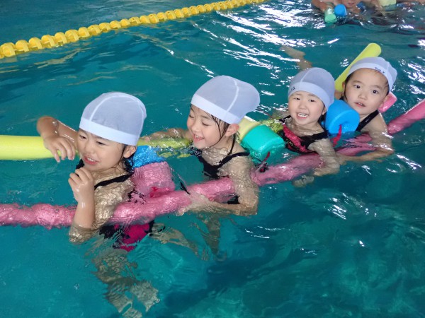 In the 10th class, they swam 25 meters close. They were able to swim without losing their form even when the swimming distance became longer. They also practiced flutter kicks in the backstroke.