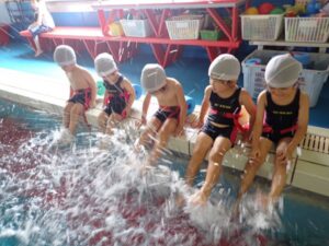 In our swimming lessons today, The Crab and Frog classes as usual did crab and crocodile walks, jumps, and face dips in the water to get accustom to the water. They could walk in water without support.