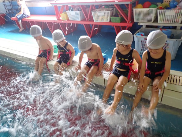 The Level 14 and Frog classes after their warm up, practiced floating, board kicks, and flapping legs. They could float alone with face in the water while keeping their body straight.