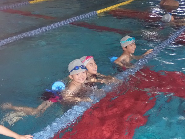In the 13th and 12th grade classes, children practiced hand movements and side breathing. During hand movements, children focused on swinging their arms widely to propel themselves forward. In the side breathing exercise, students practiced swimming while keeping their heads turned firmly to the side.