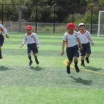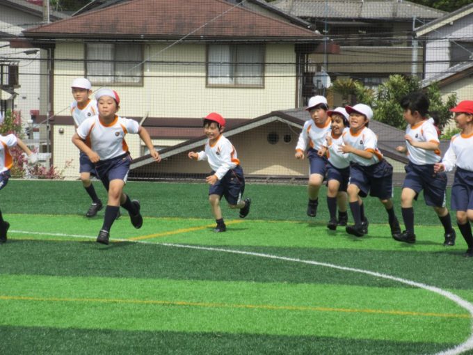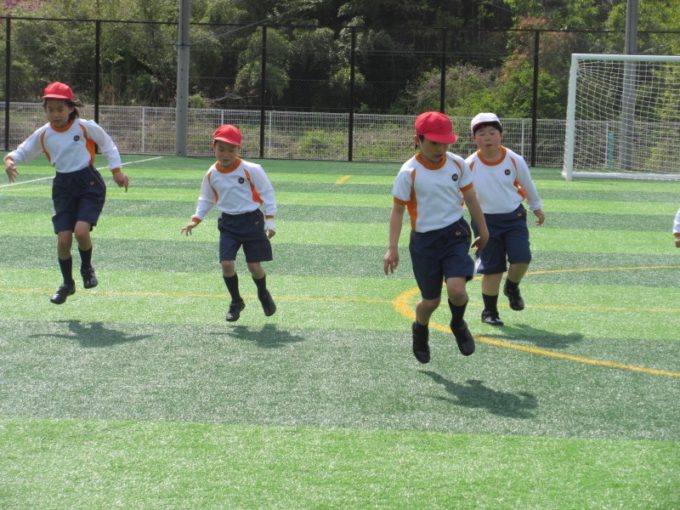 During April in P.E. class students learned about ways to run faster. Students made a single line and practiced hopping big hops from end to end of the playground. Students also practiced their “start dash” and were timed for each dash. At the end of the lesson, students roared with anticipation of having their 50 meter runs timed for the upcoming fitness test. Everyone is excited and hoping for the best to see just how much their hard work will pay off in that test.