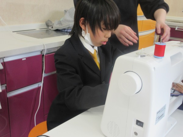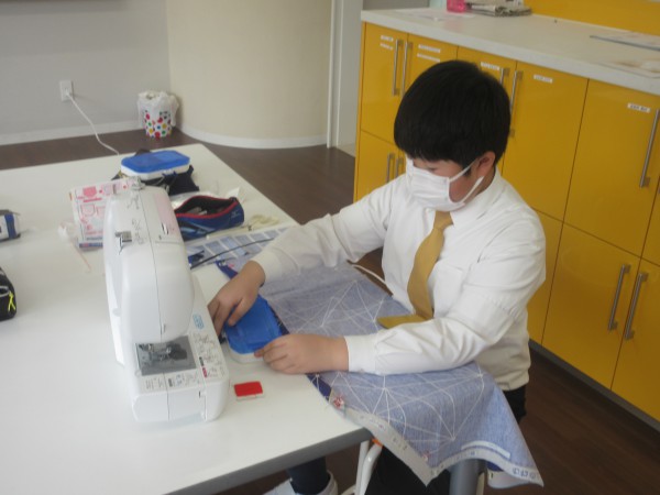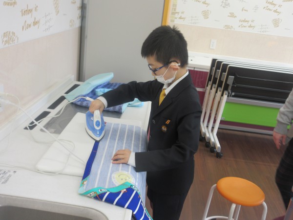 Fifth-graders made aprons during home economics time. They prepared to sew by using an iron to crease the cloth and using a needle to sew the parts to be sewn with a sewing machine. And They ware able to sew straight using a sewing machine. Every time They use it, They get better at using the sewing machine.