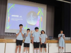 We held a Tanabata party. The 5th and 6th graders quizzed Tanabata and explained it to the younger students. The underclassmen were able to learn about Tanabata while having fun. The children then tied strips with wishes written on them and Tanabata ornaments to bamboo. I hope that the children’s wishes will come true.