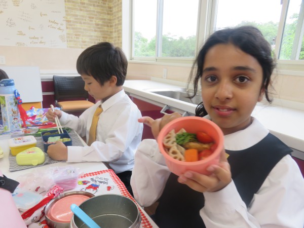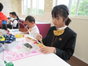 On the first bento day of this school year, we spread out bento boxes filled with only our favorite foods. There were character bento and colorfully decorated bento boxes filled with love. We had a lot of fun while looking at them together with friends and shared lively conversation over our lunch.