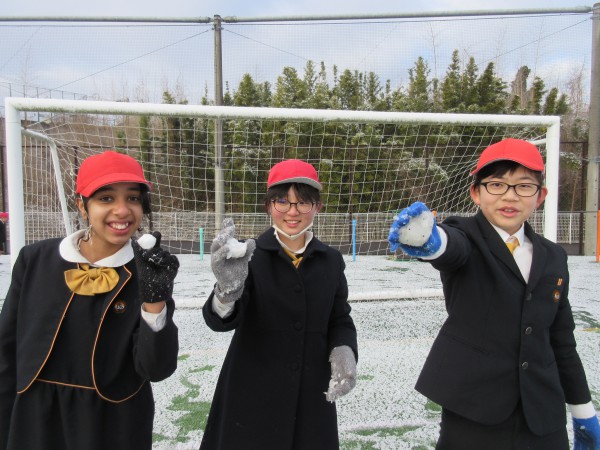 Students played in the snow that had accumulated in the schoolyard. They were excited to see the schoolyard completely covered in white. They could gather snow and make snowballs, or throw snow with friends, enjoying the feel of the snow to the fullest. Even though they were breathing heavily on their cold hands, they were able to enjoy playing in the snow, which only happens at this time of year.