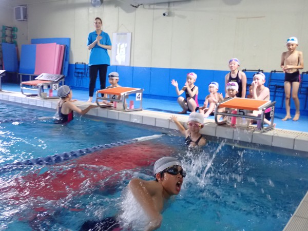 We held a swimming time trials and observed swimming classes. In order to show the results of their training so far, the students worked on the crawl, butterfly stroke, medley, and other strokes, and swam hard towards their respective target times. After the individual tests, the students split into groups to complete a relay, and were seen cheering on and encouraging not only their own swimming but also their friends on the same team. I hope that the students will be able to put what they learned in their swimming lessons this year to good use next year.