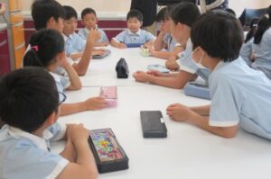 In preparation for the sports day, the students split into red and white teams and discussed how they would cheer on. The students were seen sharing and discussing ideas for things like the cheering battle movements and the cheering flag designs. We will all work together and do our best for the next month or so until the actual event.