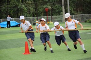 We held a Sports Day under a refreshing autumn sky. The children had been practicing hard up until then, and with the warm support of many parents in attendance on the day, they were able to fully demonstrate the results of their daily practice in relay races and dances. In addition, a cheering competition was held jointly with the kindergarten division, and both the red and white teams were able to give powerful cheers. We believe that through this big event, the children were able to grow even more.