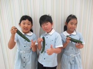 Today the students harvested the cucumbers that they grew.