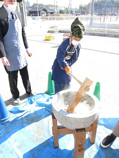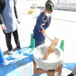 Today, the students had the chance to experience making mochitsuki. It was a good opportunity for the students to practice using kisu and usu. They enjoyed swinging the hammer up and down and striking the rice.