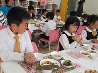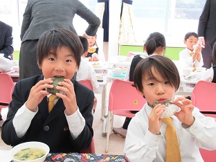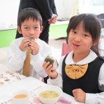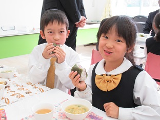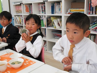 Today at lunch, the students enjoyed the rice that grew and harvested themselves. Their eyes lit up when they saw the rice, and they looked very excited to eat it. They also got a mini-course on how to make their own little balls of onigiri from the teachers. The kids were able to enjoy a different flavor of rice than usual. It was good to see the smiles on all of their faces as they stuffed their faces.