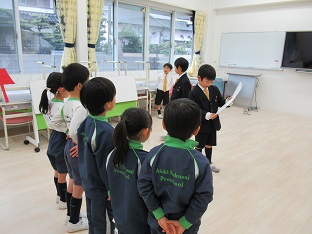 First, the 1st graders gave the preschoolers a tour around the elementary school and then they split up into groups and played games the 1st graders had prepared.