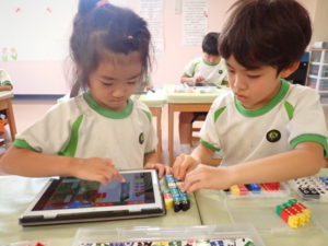 We did some programming on the stage called “Kokkyo no Yama”. We assembled blocks from the start to the goal. Where the same parts were noticed, we grouped them and were able to shorten the long program making it easier to understand. We used Function blocks for the repeated parts and call blocks to complete the task.