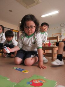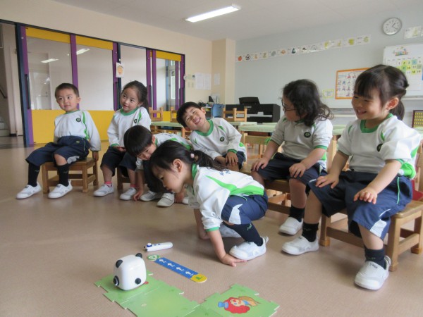 We used a teaching material called mTiny to do programming. The children learned the different instruction cards we use for programming, these cards were start, goal and moving straight. By using these cards, the children were able to move the panda robot to the desired location. They were delighted by the cute movements and voice of the panda robot.