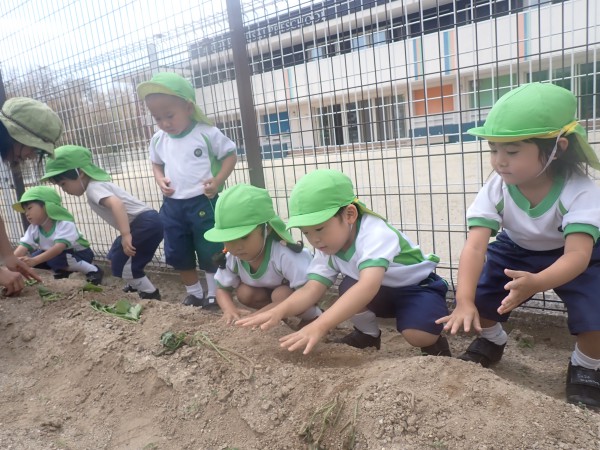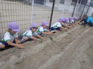 Children looked closely at the sweet potato plant, they talked about where the plant get their nutrition from, where the potatoes grow, and what are their favorite sweet potato dishes, and as they all talked about it they learned how the sweet potato grows. They all looked forward to it and they were all happy to plant it.