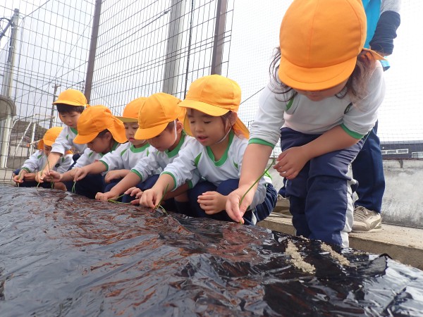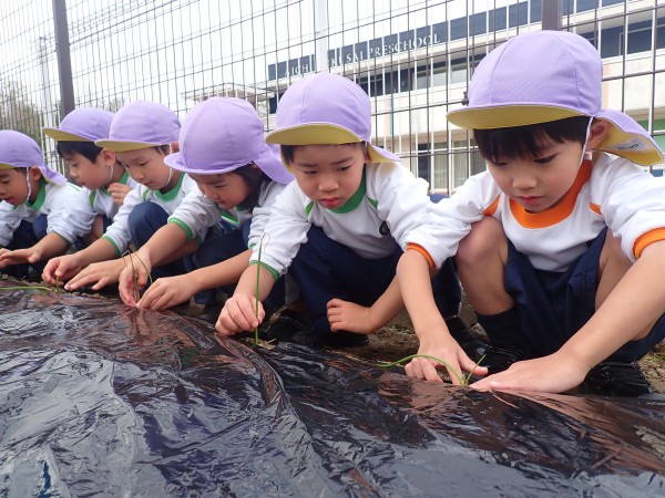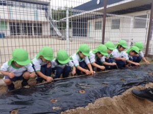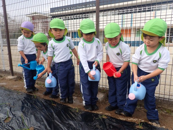 Today we planted onions. We dug holes in the soil and successfully planted them. After gently covering them with soil, we watered them, hoping they would grow big. The children are looking forward to seeing the onions get big.