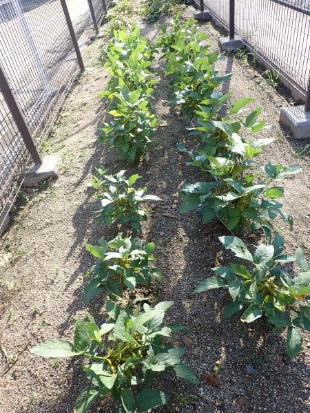 The stem beans planted by the 5 year old children are fully grown and it is now time to harvest them.