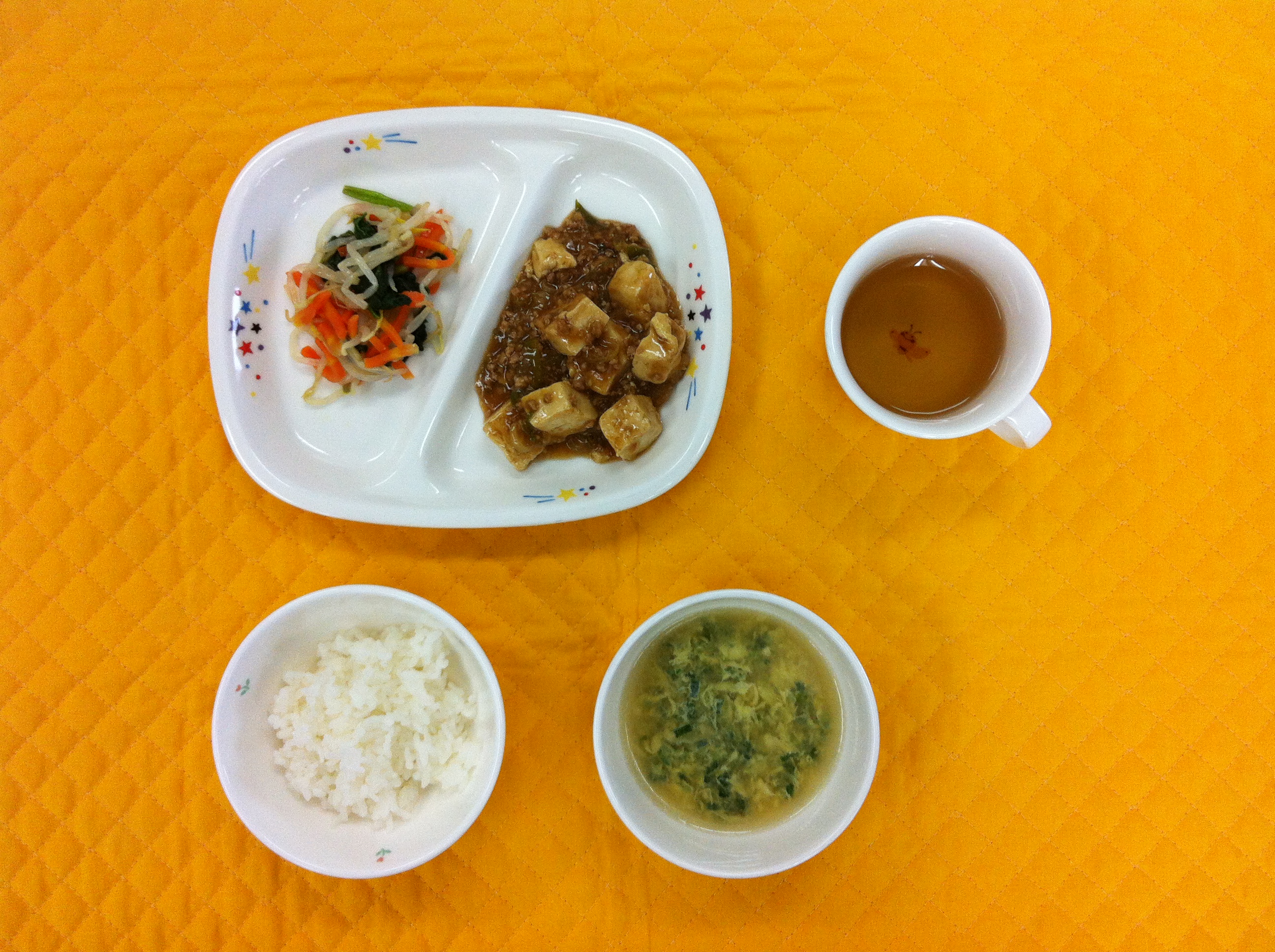 今日の給食は、麻婆豆腐です。運動会の練習もいよいよ明日で最終になります。体をおもいっきり動かせているので、子どもたちの食欲も旺盛です。 |