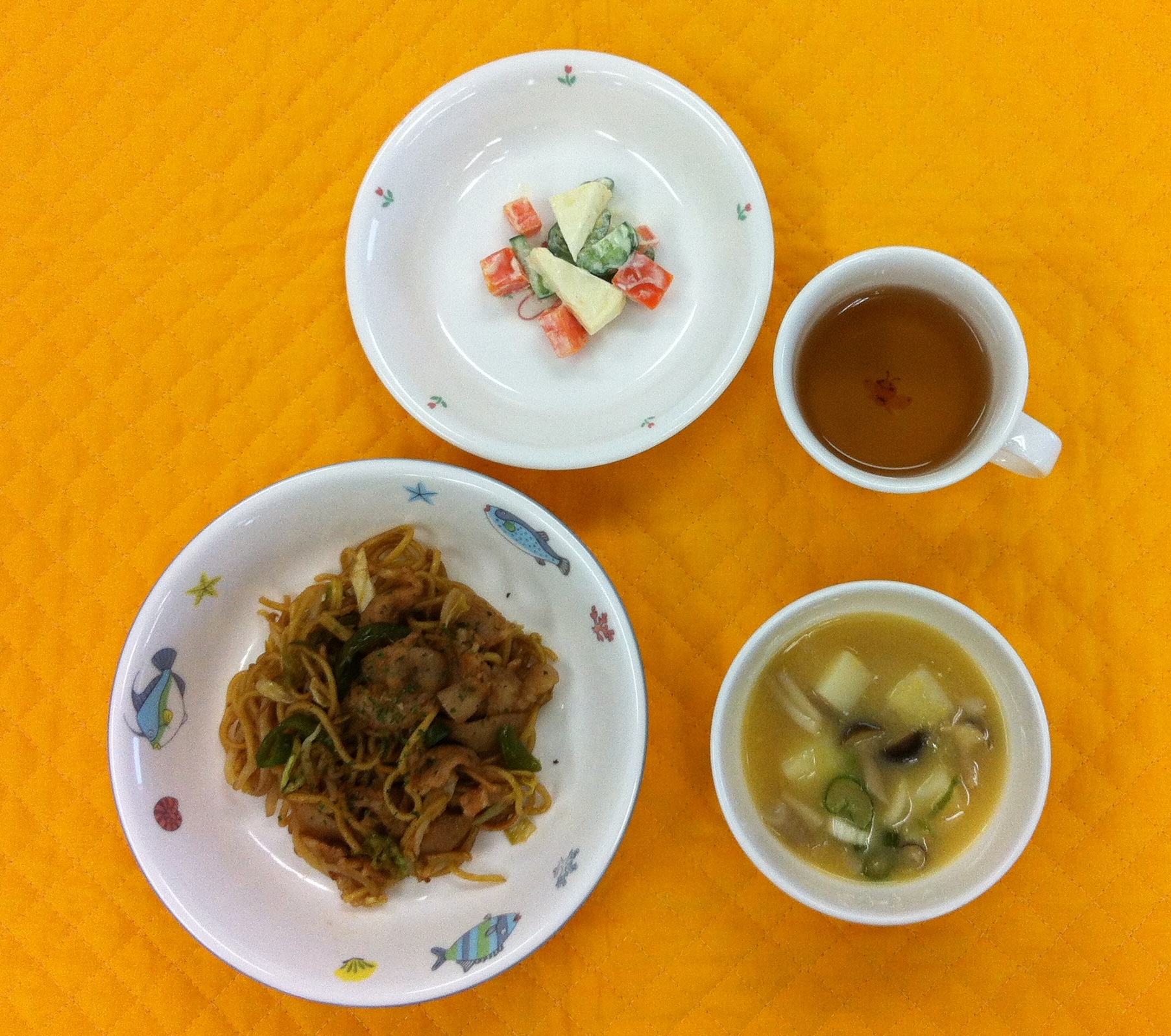 今日の給食は、焼きそばでした。今日は、午後から水泳教室なのでみんなしっかり食べていました。 |