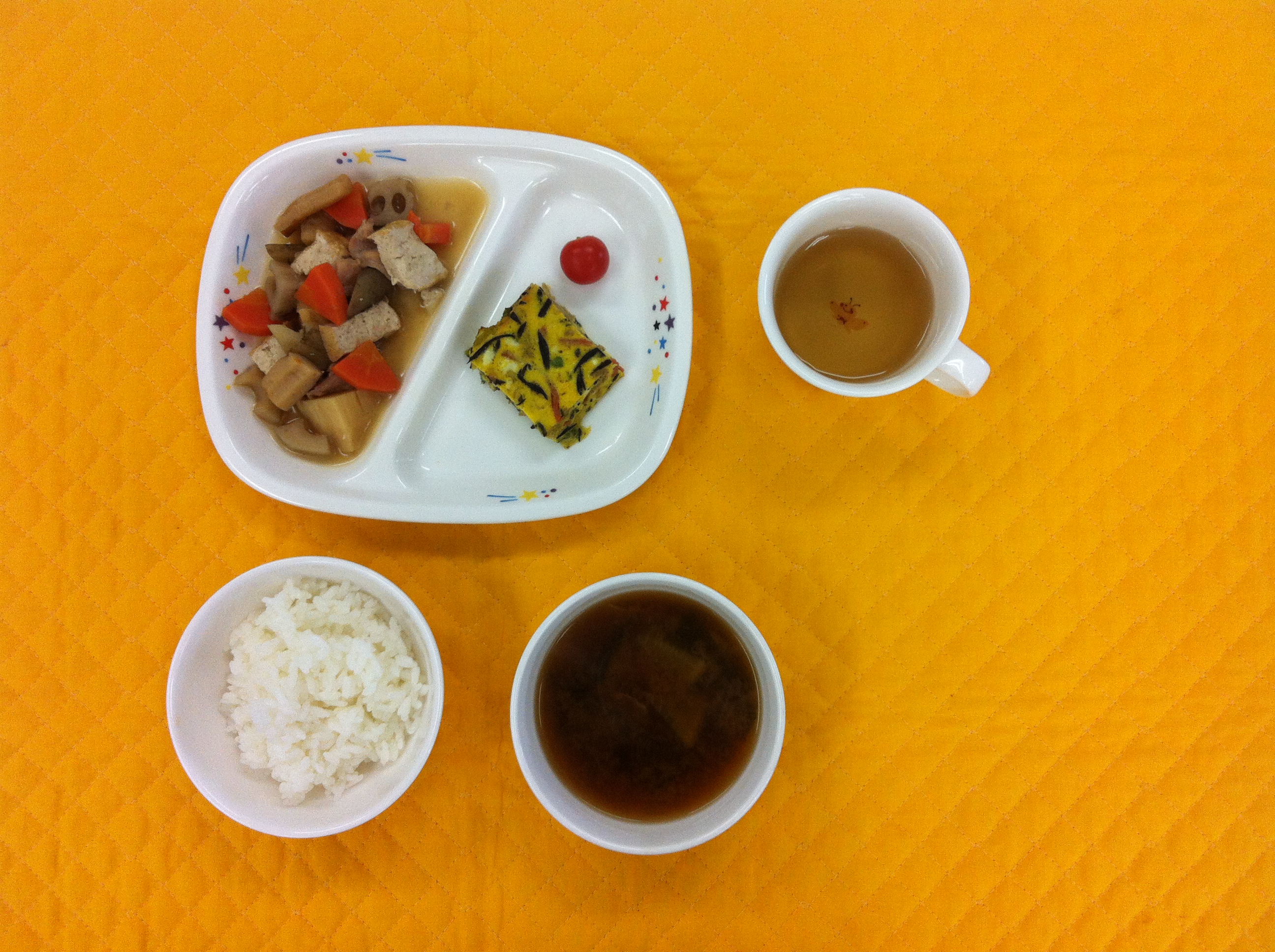 今日の給食は、筑前煮です。筑前煮には、ごぼう、人参、厚揚げ、こんにゃく、れんこんと具沢山です。甘めに味付けしています。ひじきの卵焼きは初登場です。ひじきは鉄分が入っています。 |