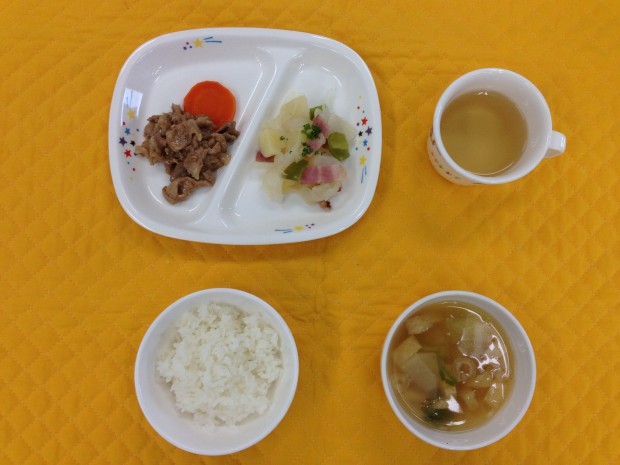 今日は、豚肉を照り焼きにしました。甘辛いタレに生姜をきかせてくさみを抜き、食べやすく作りました。また副菜にはm、じゃが芋を使ってあっさりと塩味に仕上げました。 |