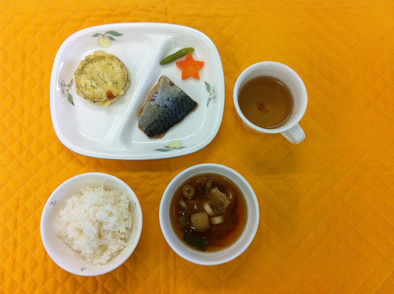 主菜 鯖の味噌煮(付け合せ 人参・インゲン)