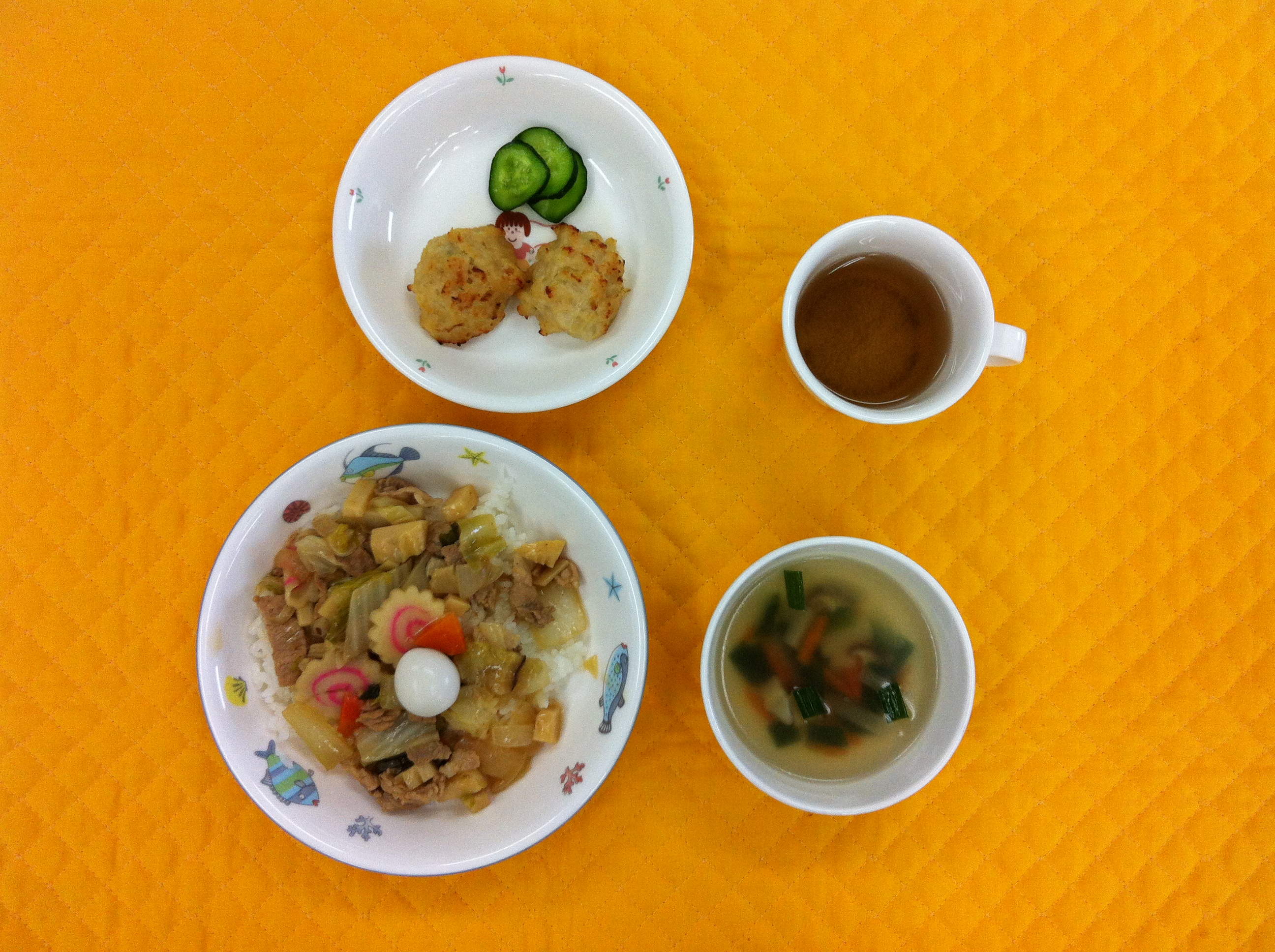今日の給食は、中華どんぶりです。中華味をきかせ沢山の具を、固めの片栗粉でとじました。つくねは、新玉ねぎをみじん切りにし蒸し焼きにする事で甘みを出しました。味付けは、シンプルに、醤油、塩、しょうがのみです。ふんわりと仕上がりました。 |