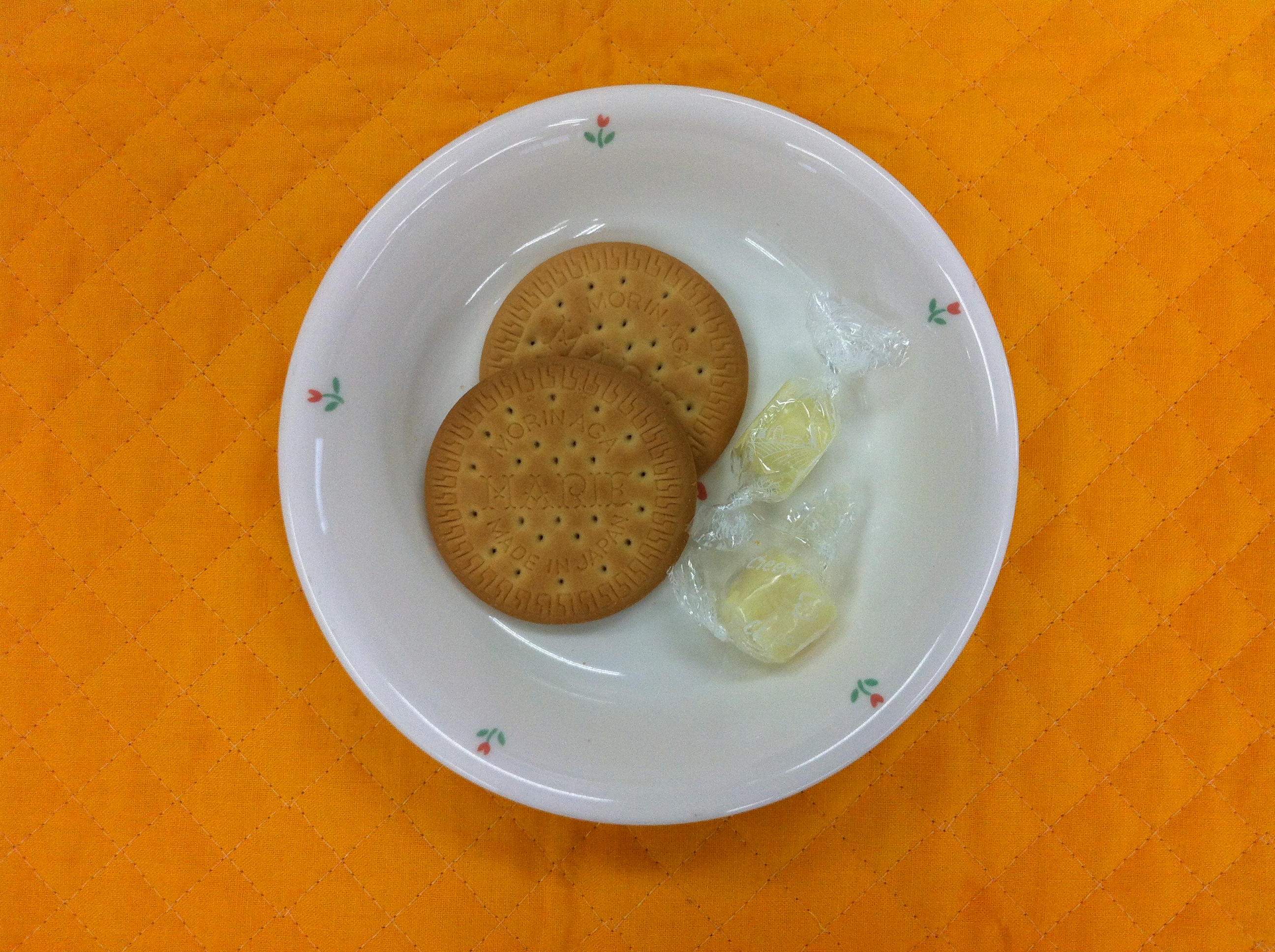 今日のおやつは、チーズとビスケットです。