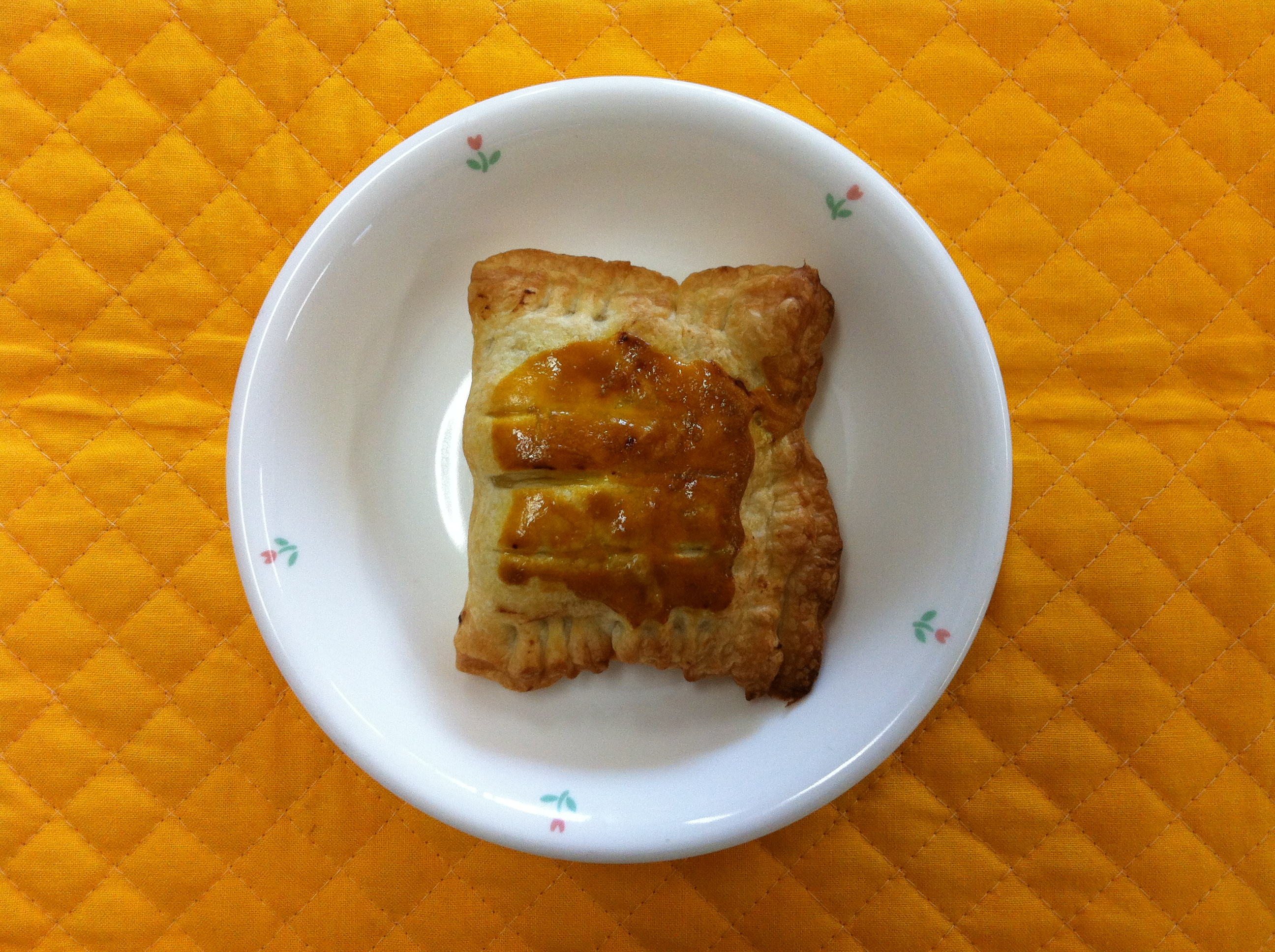 今日のおやつは、バナナパイです。手作りなのであつあつです。