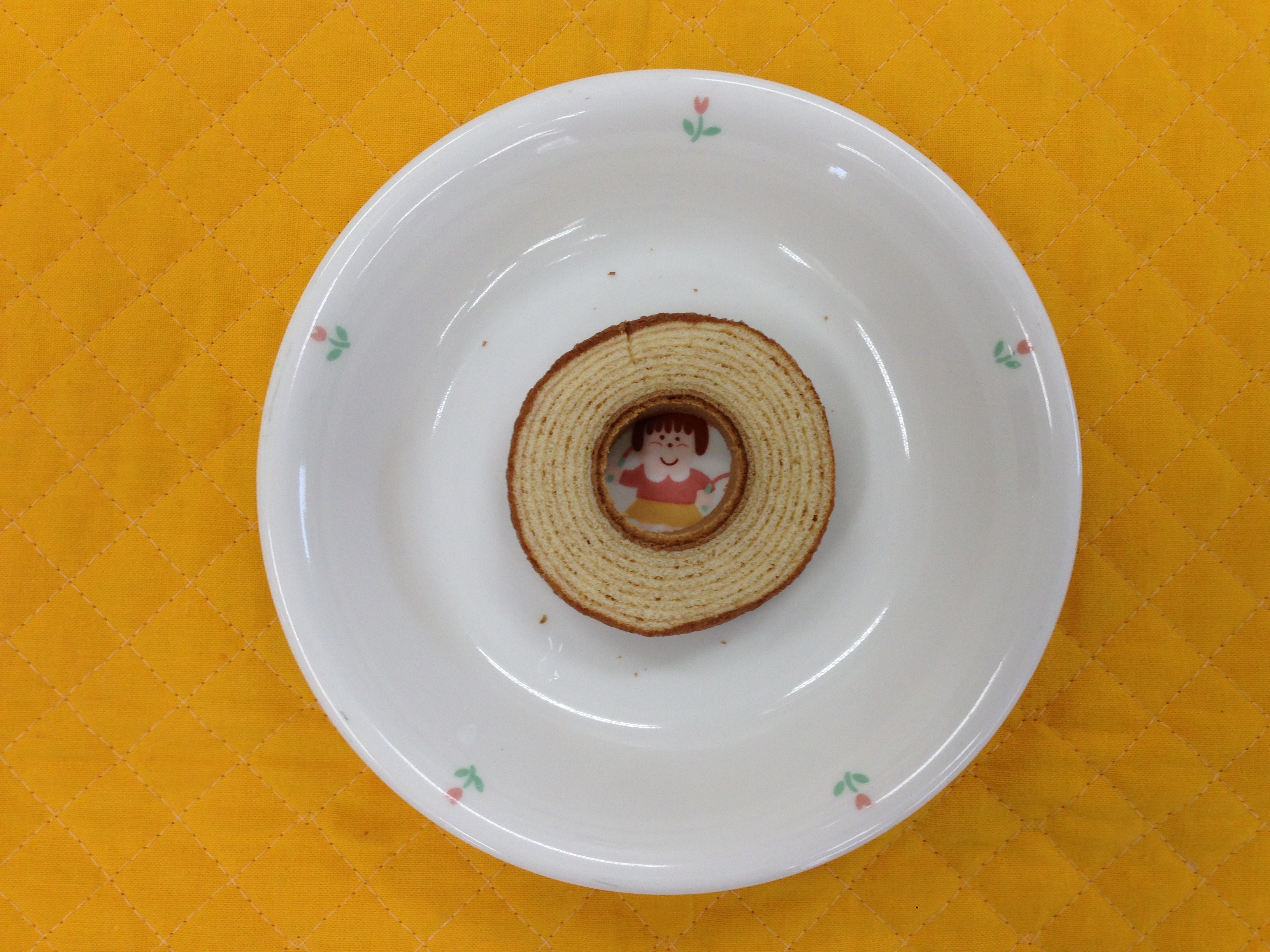 今日のおやつはバームクーヘンです。