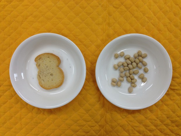 今日のおやつは、左:満2歳・2歳・3歳 ラスク、右:4歳・5歳 鬼ぱっくんです。