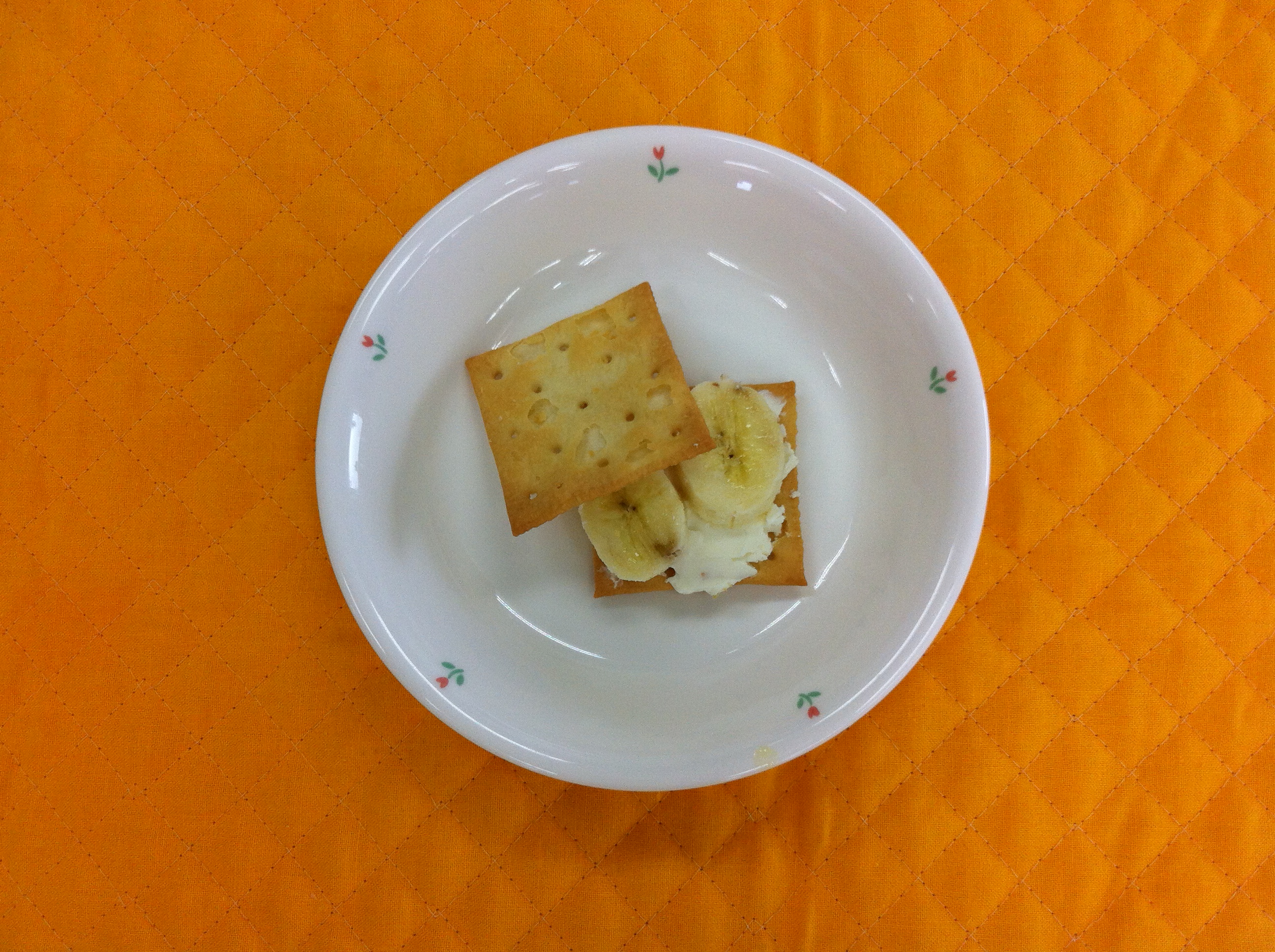おやつ献立 クラッカーサンド(クリームチーズ・バナナコンポート)