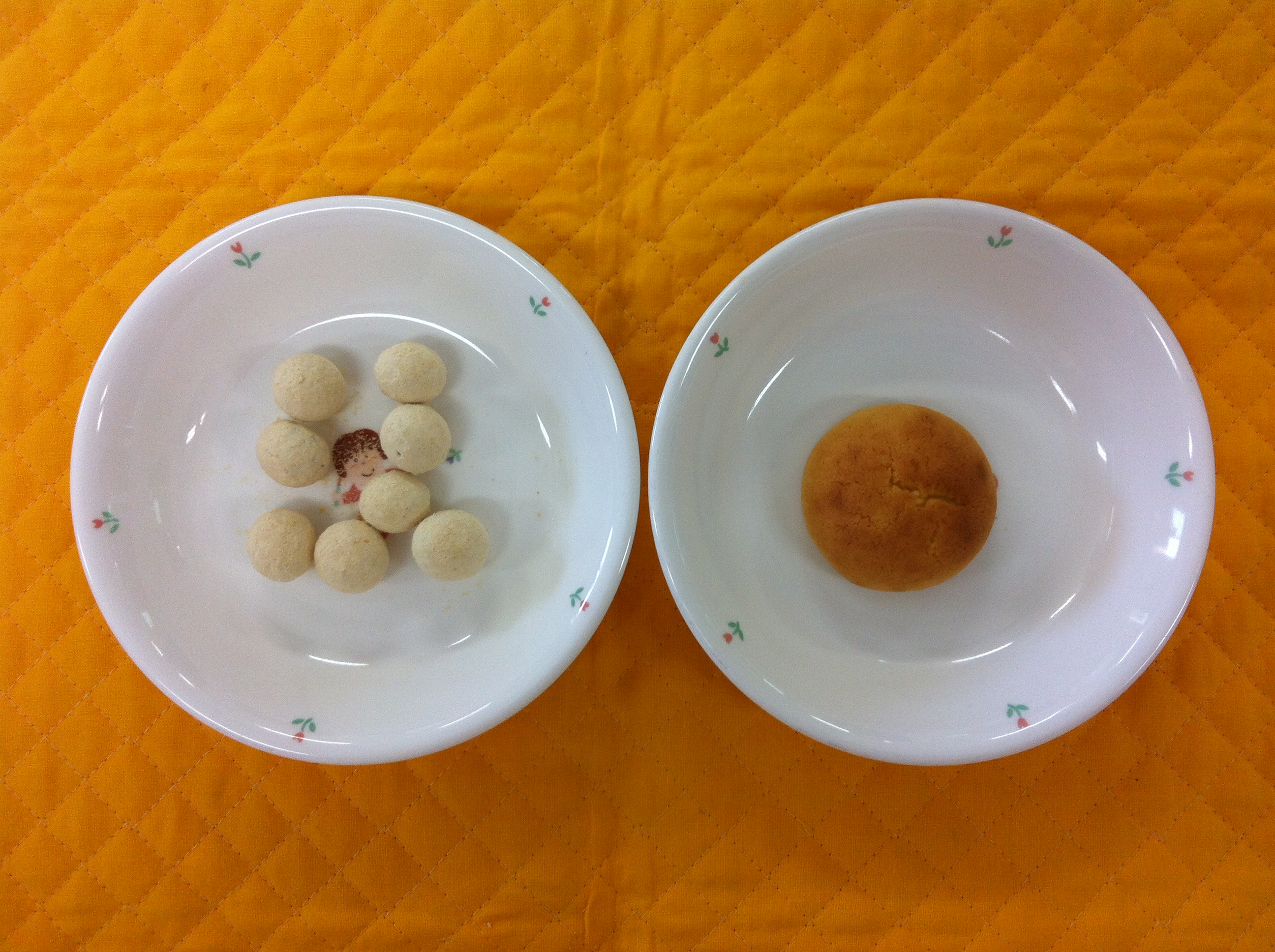 左は、3.4.5歳 きなこボーロ 右は、2歳ソフトケーキです。