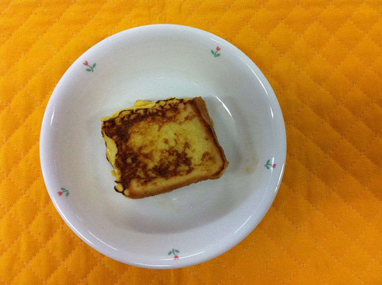今日のおやつは、フレンチトーストです。