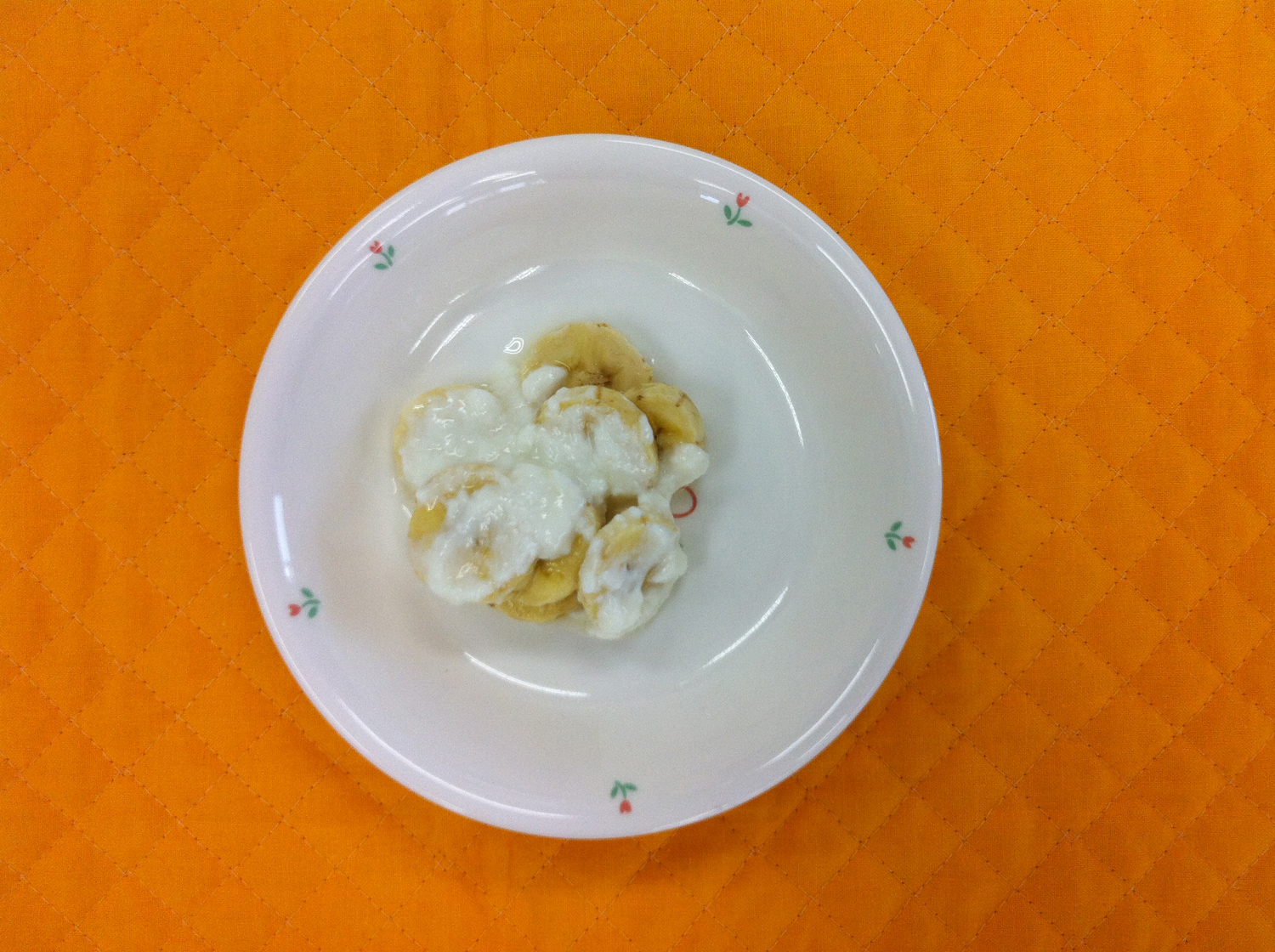 バナナを無糖ヨーグルトで和えました。果物の甘さだけのやさしい甘味のおやつです。