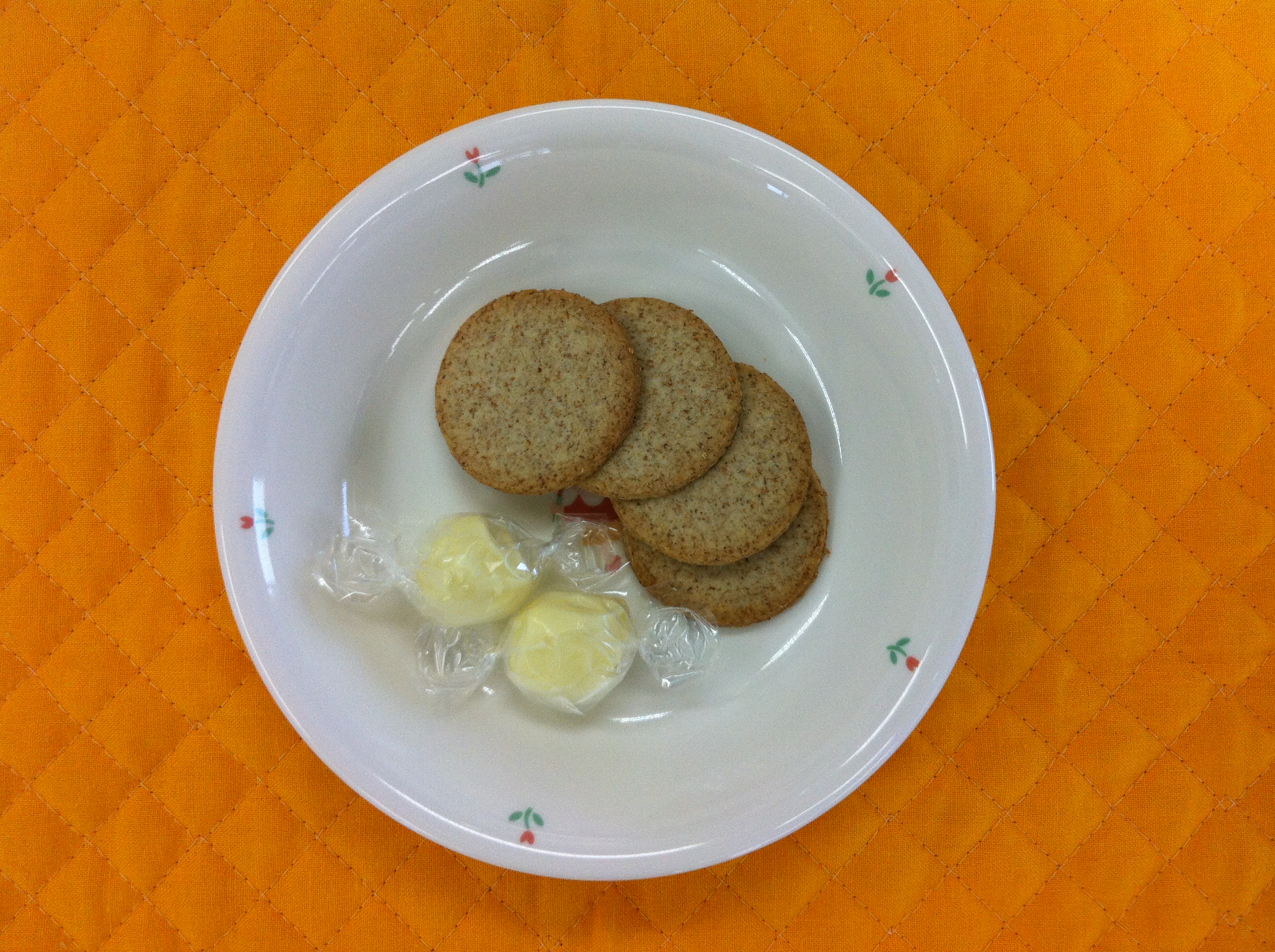 今日のおやつは、ひと口チーズとブランクッキーです。ブランクッキーを試食しましたが、とても健康的なおやつでした。