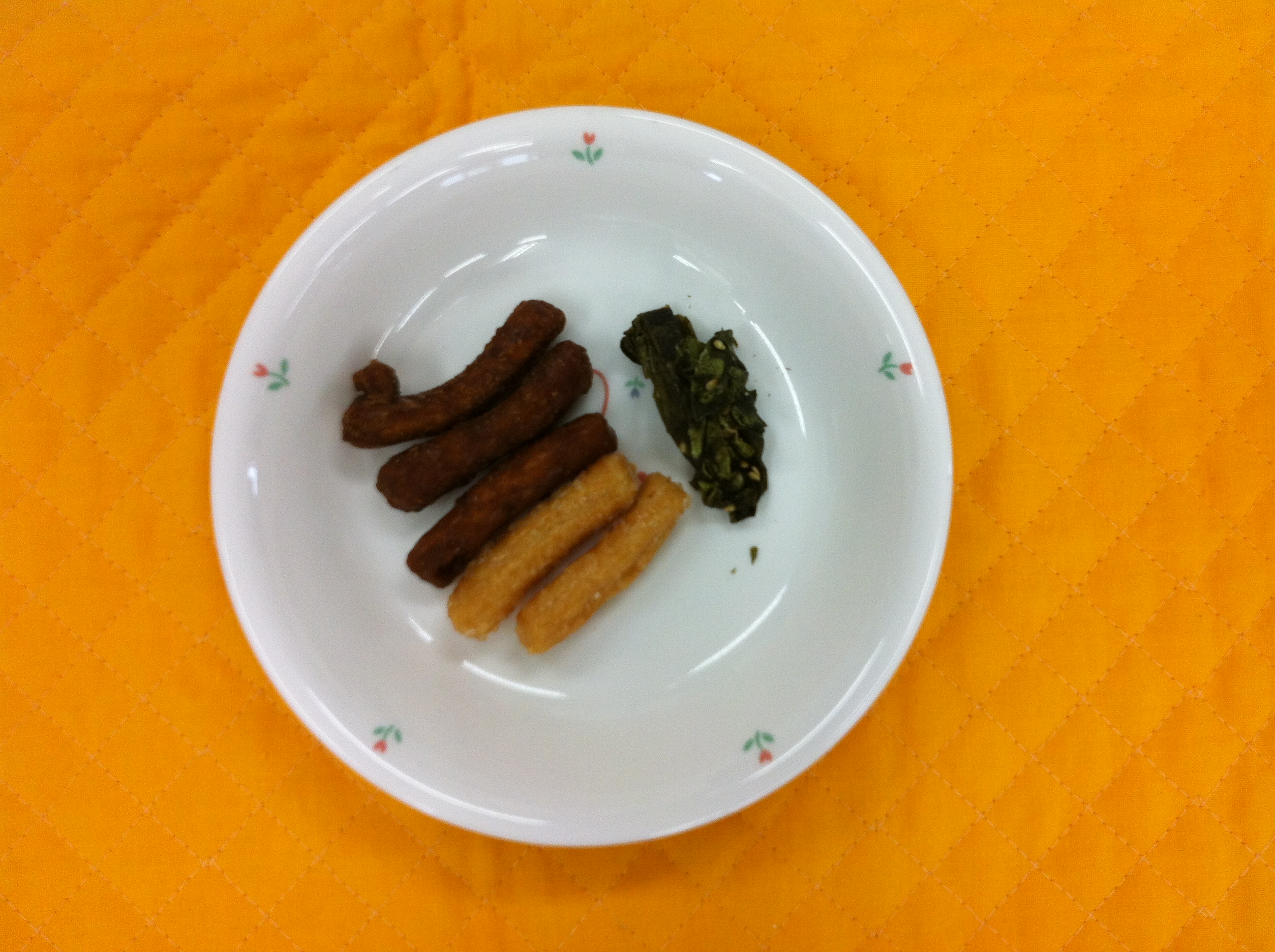 今日は、洗双糖のかりんとう、黒糖のかりんとうと、パリパリ食感のワカメです。