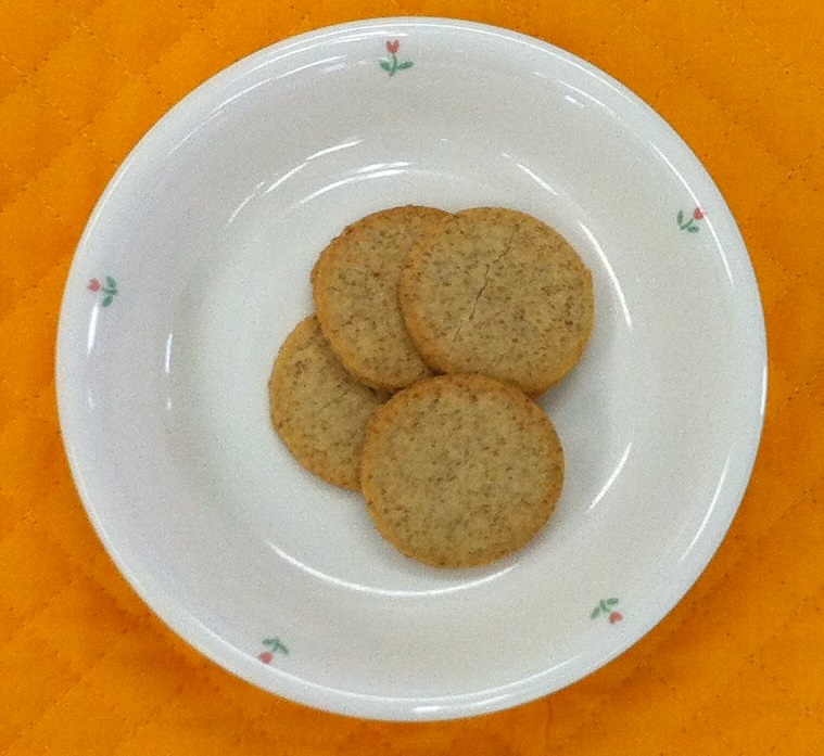 今日のおやつは、食物繊維の豊富なブラン(小麦ふすま)と全粒粉配合の、チーズ味のクッキーです。