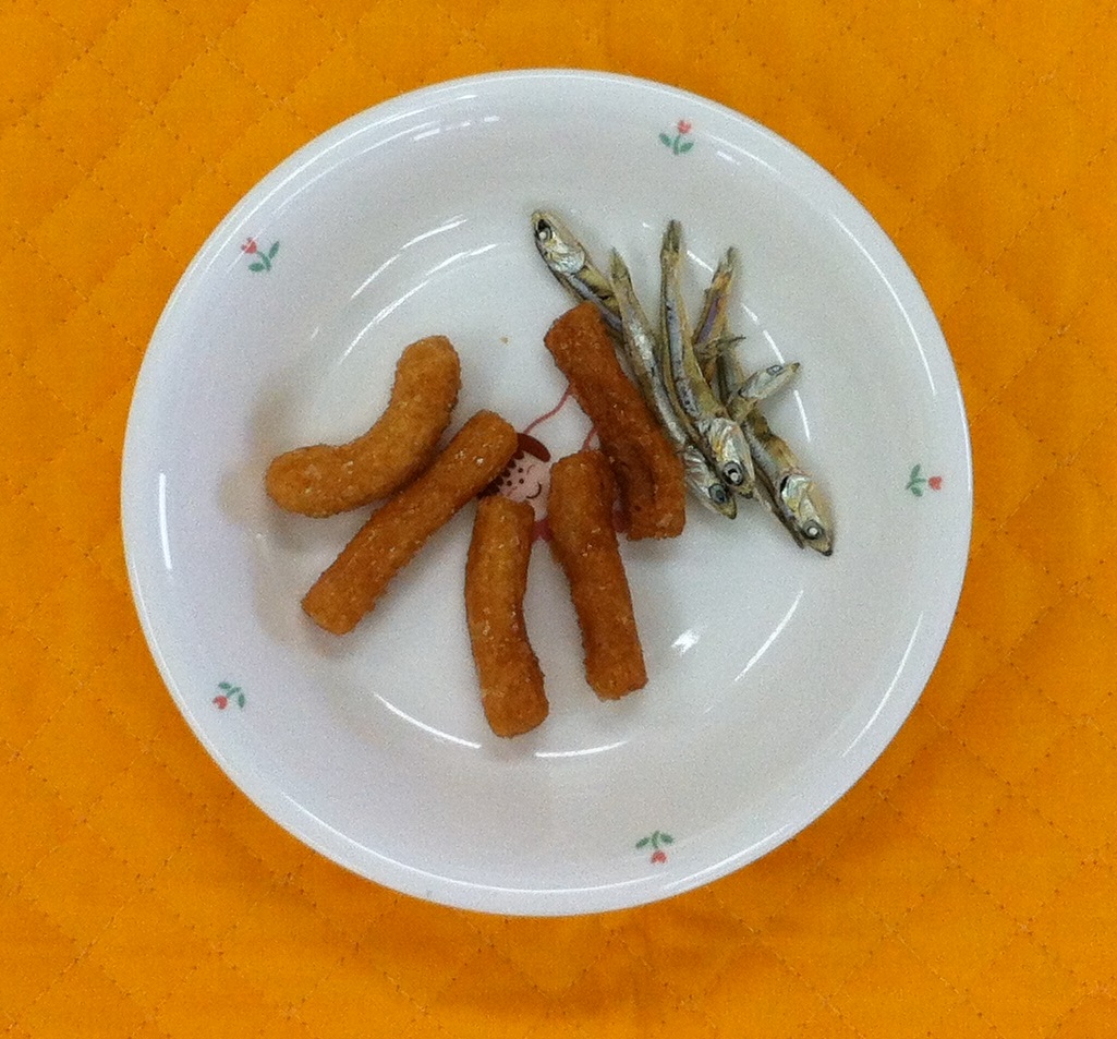 今日のおやつは、かりんとうと煮干しでした。子どもたちの好みは、かりんとう派と煮干し派があるようです。おやつに煮干しは、体にいいですよ。
