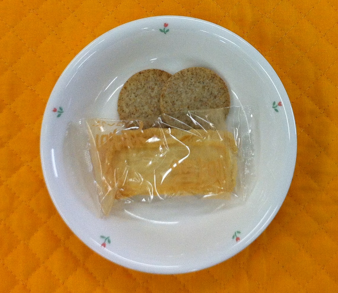 今日のおやつは、豆乳おかきとクッキーです。『和』と『洋』のおやつですね。