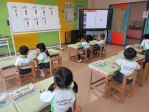 子ども達は、プログラミングに使う様々なブロックの名前や働きについて学びました。動物のブロックを使うと、ソビーゴが速くなったり、ゆっくりになったり、大きくなったり、小さくなったりするのを見て、子ども達はとてもわくわくしていました。村の地図を使ってブロックをプログラミングし、タブレットで実行することもできました。みんなとても良く出来ていて、次のプログラミングの授業を楽しみにしています。