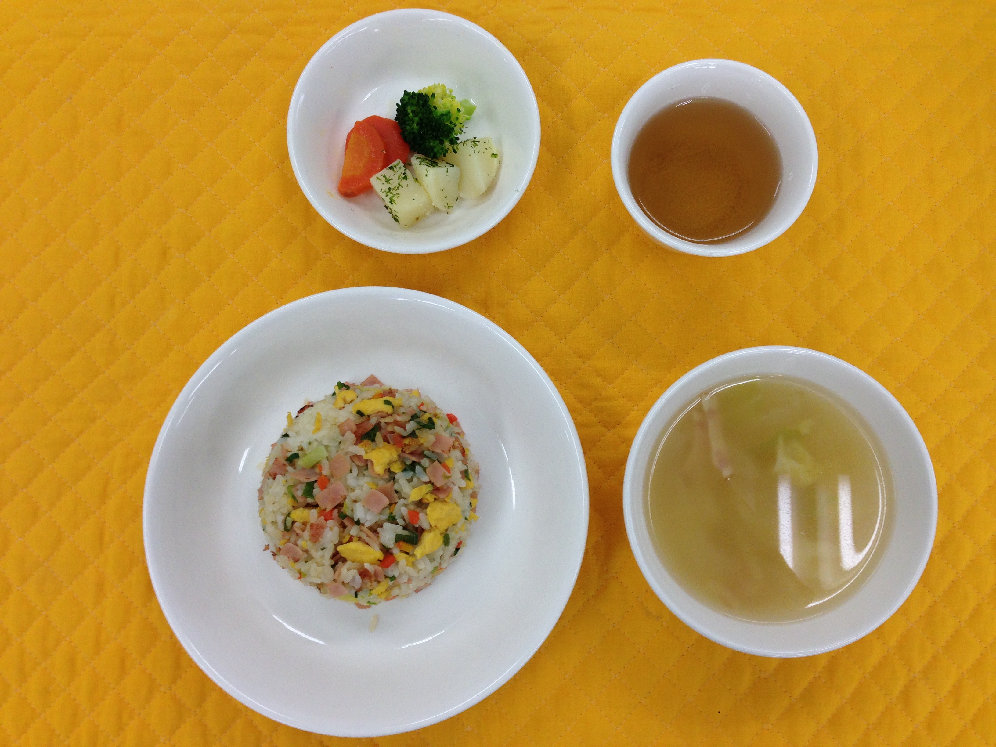 今日の給食は子ども達に人気のチャーハンです。